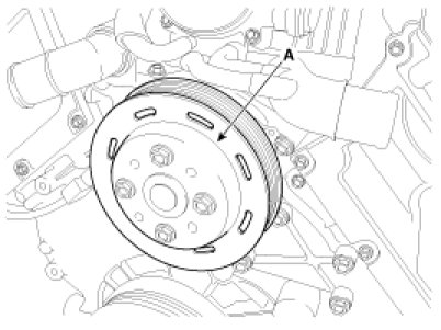 8. Remove the water pump pulley (A).