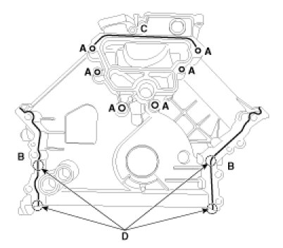 - During timing chain lower cover installation, care not to take off applied sealant on the timing chain lower cover by contact with other parts.