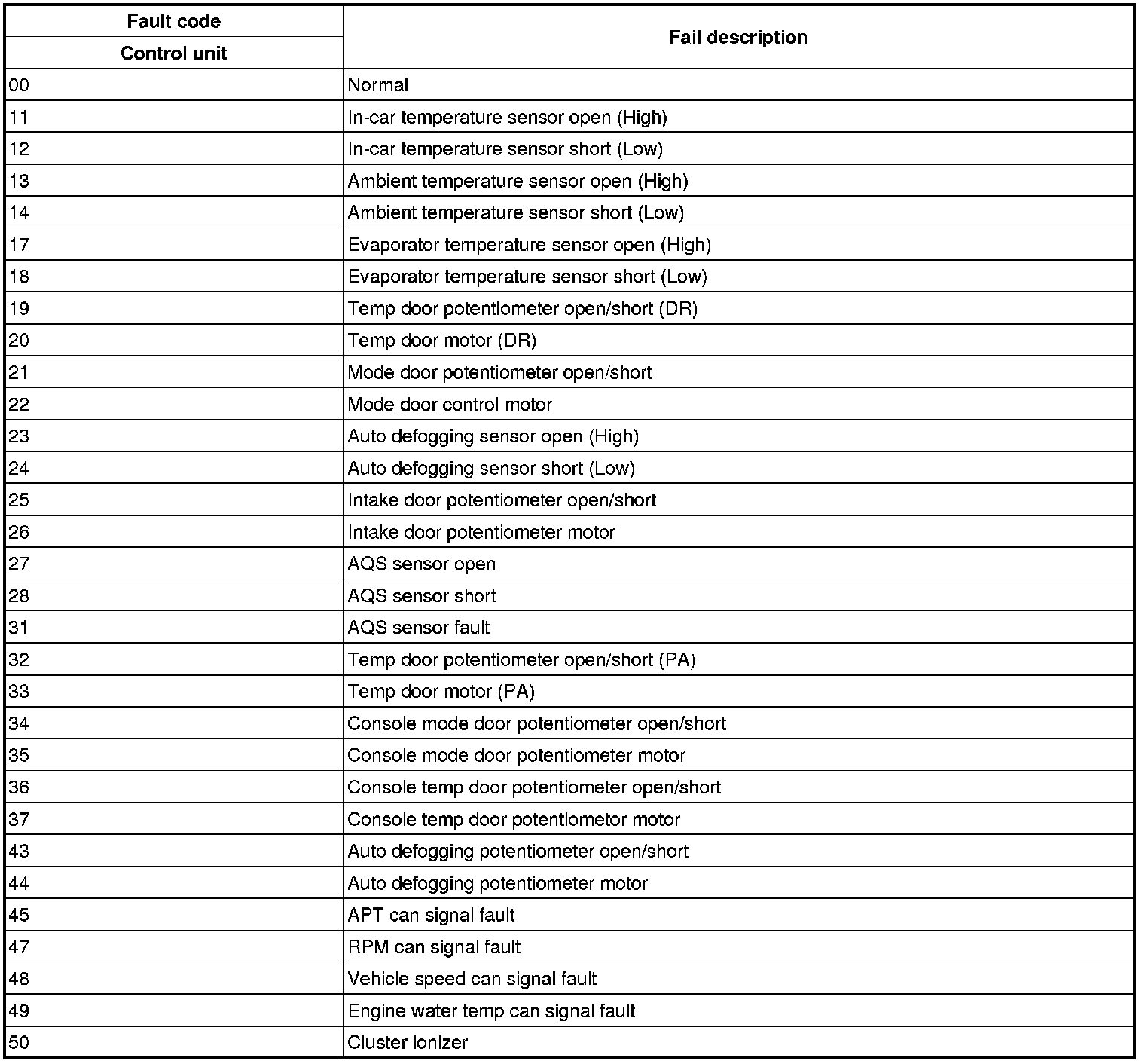After the display panel flickers three times every 0.5 second, the corresponding fault code flickers on the setup temperature display panel every 0.5 second and will show two figures. Codes are displayed in numerical format