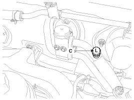 Recovery/Recycling/Charging System (A) to the high-pressure service port (B) and the low-pressure service port (C) as shown, following the equipment manufacturer's instructions.