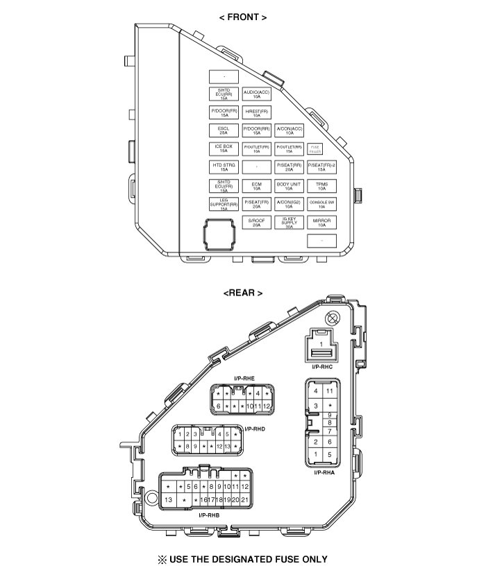 - In case of the hood open warning lamp on when the hood is closed, check the power connector in passenger compartment relay box located at the left lower side of instrument panel.