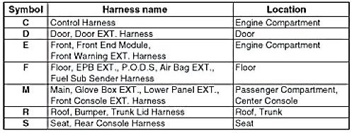 * Depends on vehicles, it is necessary to check the harness name symbol on the harness layouts for detailed symbol.