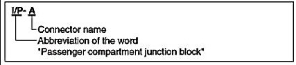 A junction block identification symbol consists of a wiring harness location classification symbol corresponding to a wiring harness location and number corresponding to the connector in the junction block.