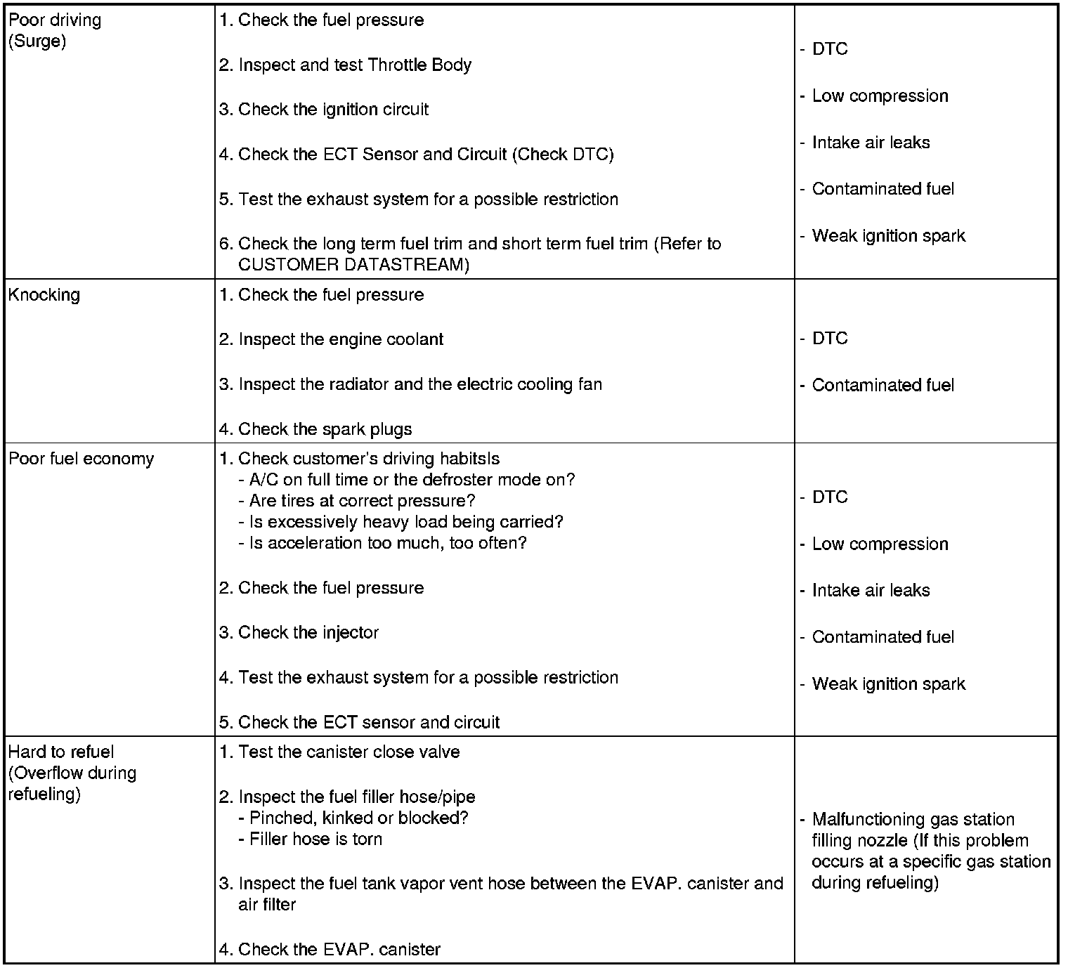 Symptom Troubleshooting Guide Chart