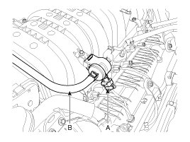 3. Disconnect the vapor hose (B) which is connected with the intake manifold from the PCSV.