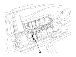 5. Disconnect the battery (-) cable, and then install the fuel pump relay (A).