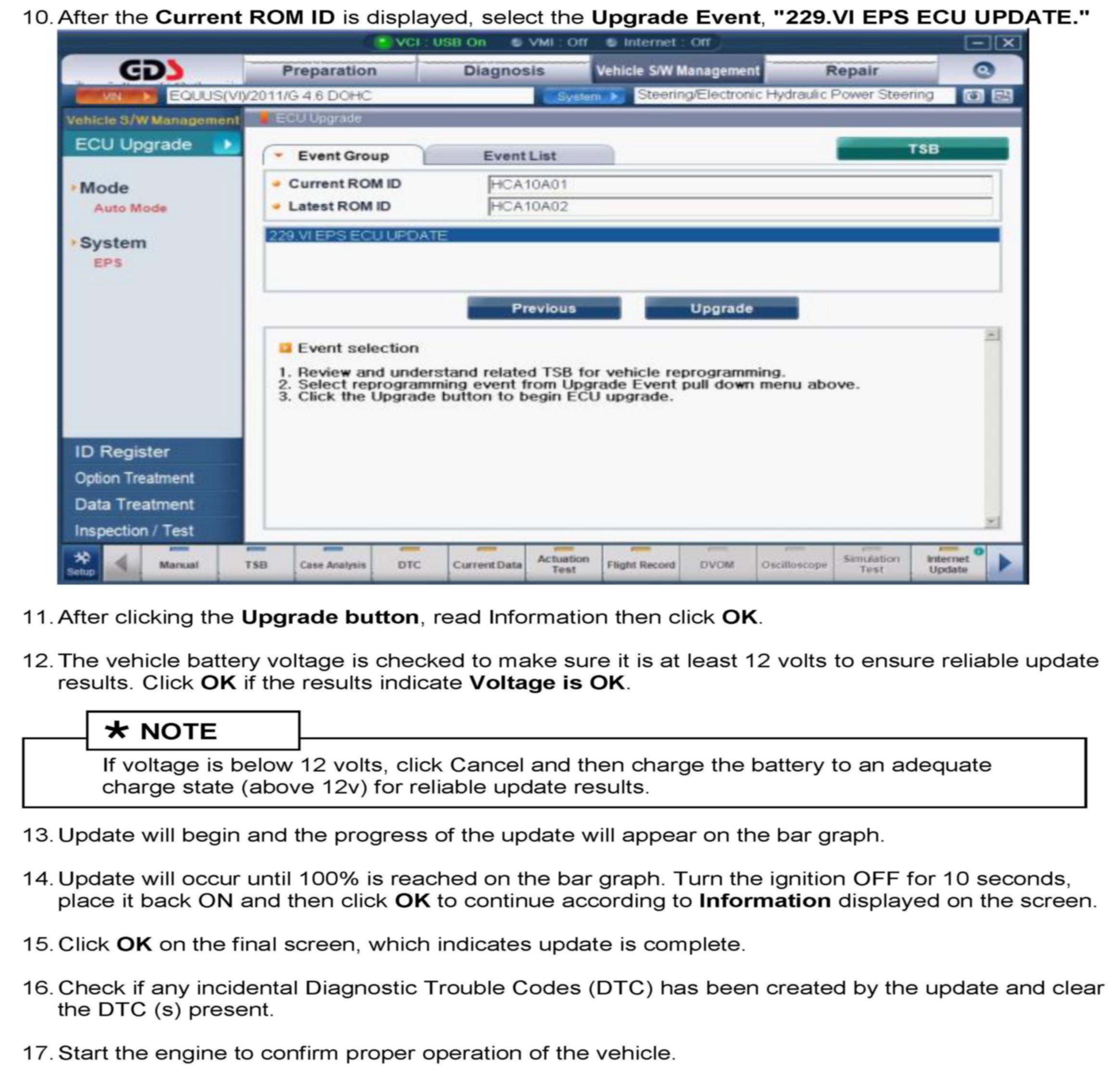 ^ Vehicles produced April 13, 2011 and later do not require the EHPS update procedure.