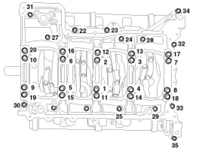 - Always use new main bearing cap bolts.