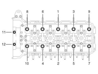 Cylinder head bolts (1 - 10) 32.4 - 36.3 N.m (3.3 - 3.7 kgf.m, 23.9 - 26.8 lb-ft) + 88°~92°+ 118°~122°