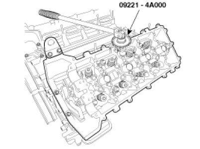 Using SST(09221-4A000), install and tighten the cylinder head bolts and plate washers, in several passes, in the sequence shown.