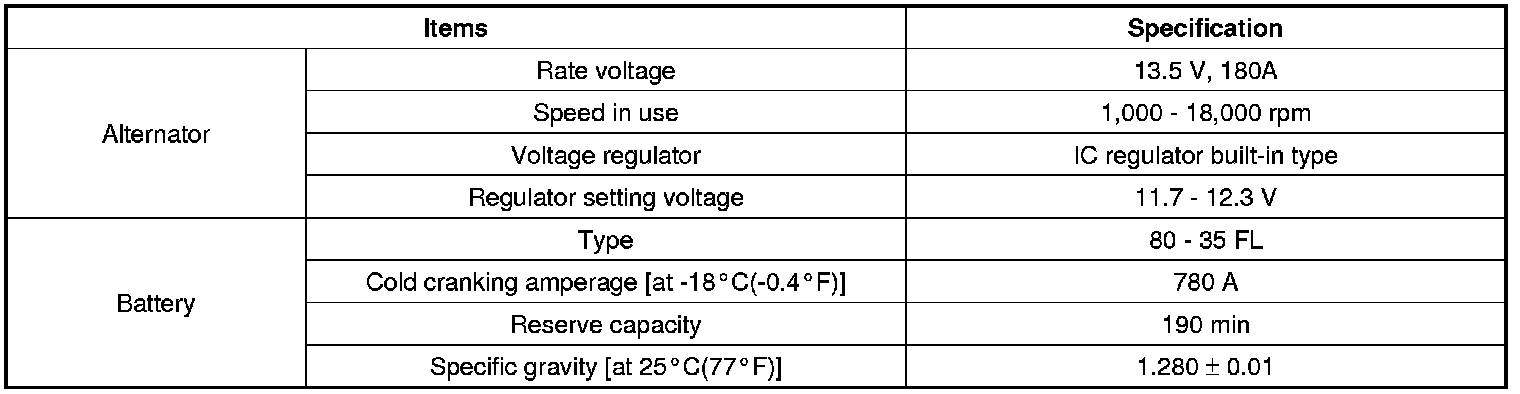 Charging System: Specifications