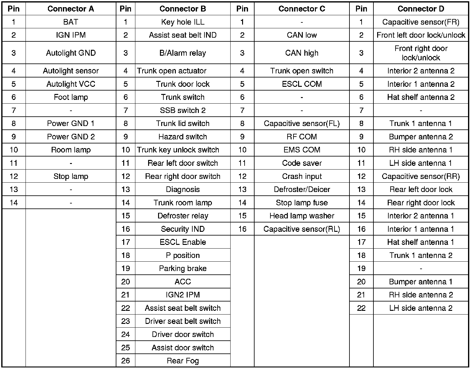 Connector Pin Information