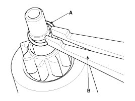 11. After removing the stop ring (A) using stop ring pliers (B).