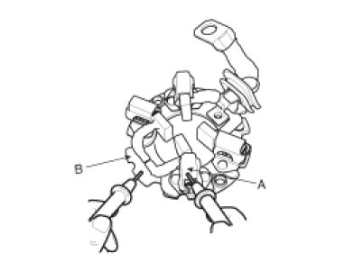 1. Make sure there is no continuity between the (+) brush holder (A) and (-) plate (B). If there is continuity, replace the brush holder assembly.