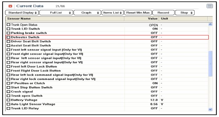 1. The rear window defogger switch inputs can be checked using the GDS.