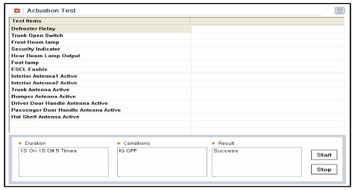 4. To check the input value of rear window defogger switch in force mode, select option "ACTUATION TEST".