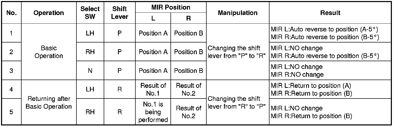6. Out side mirror AUTO reverse operation