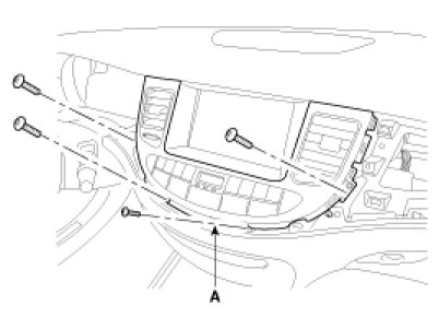 5. Remove the center fascia panel (A) after removing the screws.