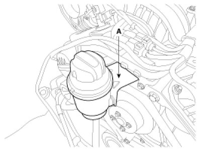 (1) Disconnect the power steering oil pressure switch connector(A) and RH knock sensor connector(B).