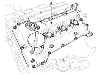 20. Remove the connector brackets (A) from the LH/RH cylinder head cover.