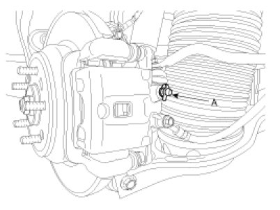 3. Loosen the right-rear brake bleed screw (A) to allow air to escape from the system. Then tighten the bleed screw securely.