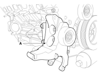 21. Remove the tensioner adapter (A) and the timing chain guide bolts (B).