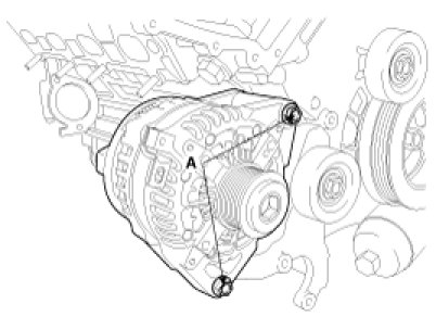 (2) Loosen the alternator mounting bolts (A) and then remove alternator from the vehicle.