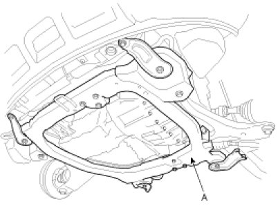12. Remove the sub frame stay mounting bolts (A), nuts (B) and the sub frame mounting bolts (C) by supporting it with a jack.