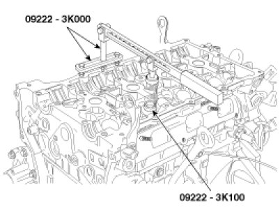 (3) Using the SST(09222-3K000, 09222-3K100), compress the spring and install the retainer locks. After installing the valves, ensure that the retainer locks are correctly in place before releasing the valve spring compressor.