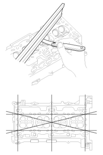 Using a precision straight edge and feeler gauge, measure the surface the contacting the cylinder block and the manifolds for warpage.