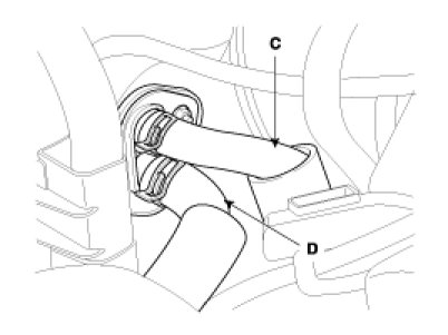 5. Disconnect the inlet (C) and outlet (D) heater hoses from the heater unit.