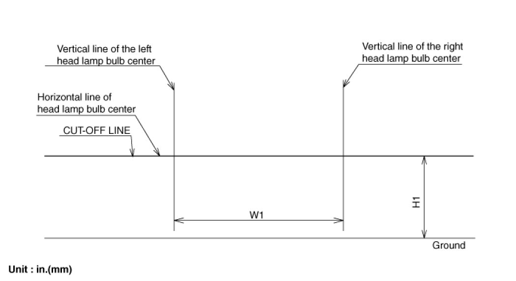 4. With the head lamp and battery in normal condition, aim the head lamps so the brightest portion falls on the vertical lines.