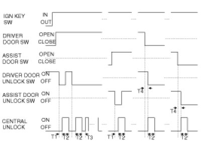 (3) When the TUNLOCK signal is received, the DRIVER DOOR UNLOCK output shall be ON for T2. But, if the TUNLOCK signal is received within T1, the UNLOCK output shall be ON to all doors for T2.