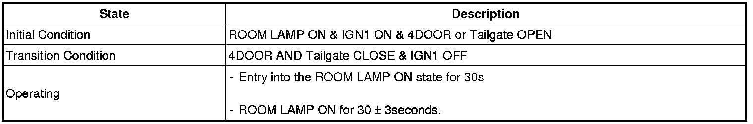 (2) In the (1) state, if the driver's door (or assist's door) is closed, then the IGN Key Hole Illumination shall be OFF after it is in the ON state for 30 seconds.