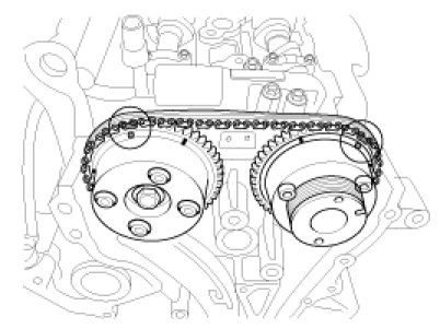 Before removing the timing chain, mark the RH/LH timing chain with an identification based on the location of the sprocket because the identification mark on the chain for TDC (Top Dead Center) can be erased.