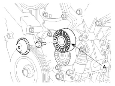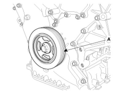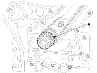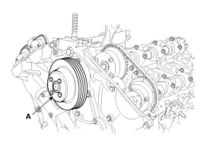 37. Remove the crankshaft sprocket (A) (O/P & RH camshaft drive).