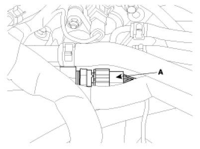 9. Disconnect the PCSV hose (A), fuel hose (B).