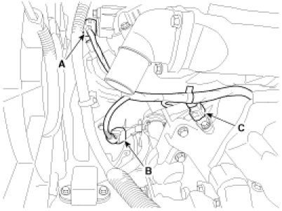(2) Disconnect the air intake hose and then remove the air cleaner assembly (C).