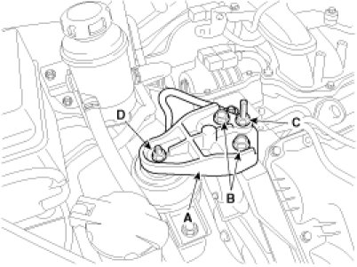 13. Disconnect the ground cable, and then remove the engine mounting bracket (A).