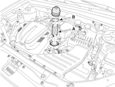 (5) Install a new oil filter element (A) and two new O-rings (B).