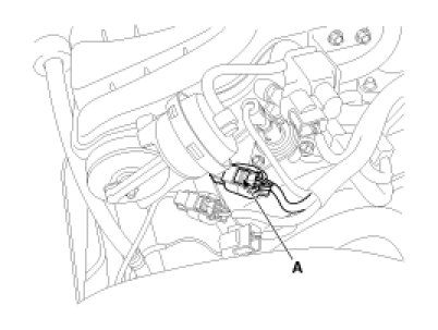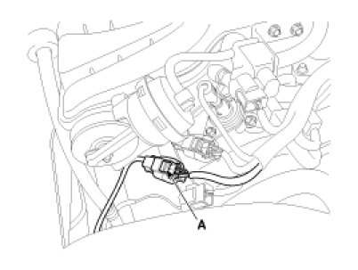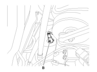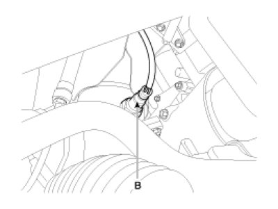 2. Disconnect the connector (A), and then remove the sensor (B).