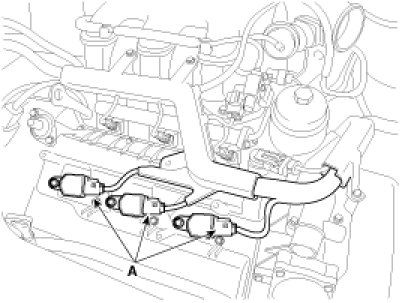 3. Remove the ignition coil connectors (A) and ignition coils (B).