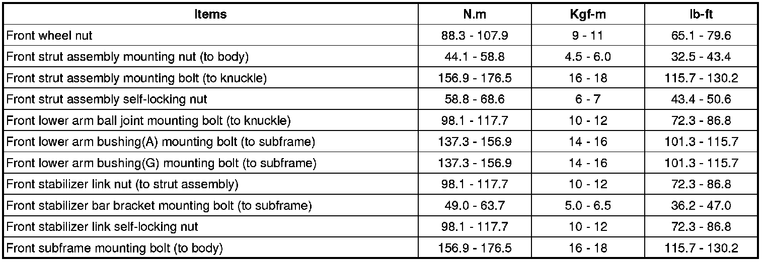 Tightening Torques