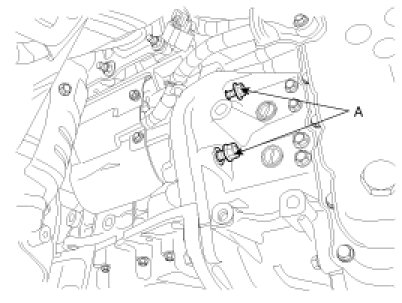4. Disconnect the solenoid valve connector (B) and inhibitor switch connector (A).