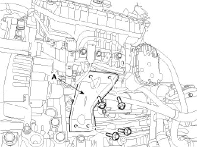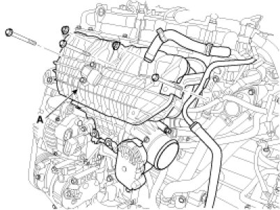 12. Remove the intake manifold (A) after disconnecting the vacuum hoses.
