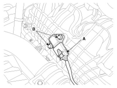 3. Remove the installation bolts (B), and then remove the sensor from the surge tank.