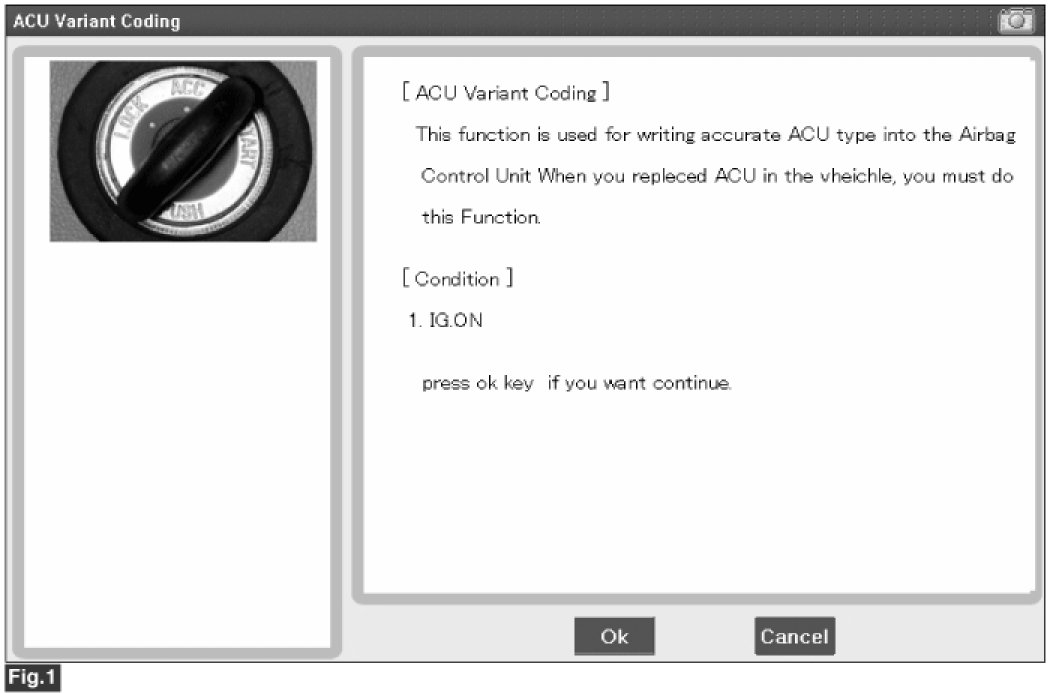 1. On SRSCM variant coding mode, the airbag warning lamp is periodically blinking (ON: 0.5sec., OFF: 0.5sec.) until the coding is normally completed.