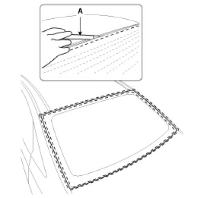 5. Paste the rear window glass molding (A), and then install the rear window glass (B).