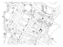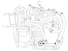 6. Lift the vehicle, then remove the oil level plug (A) from the valve body cover.