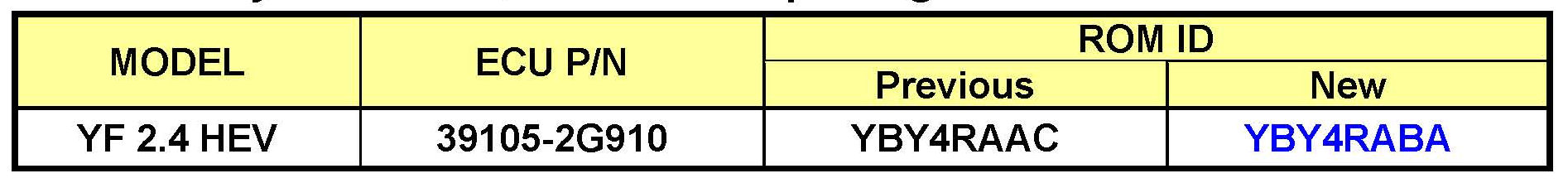 For 2011 Sonata Hybrid (YF HEV) vehicles, this bulletin provides a procedure to inspect the NVLD (Natural Vacuum Leakage Detection - Pressure Sensor Assembly) and replace it, it necessary, with a revised part. In addition, it provides a procedure to update the ECM.